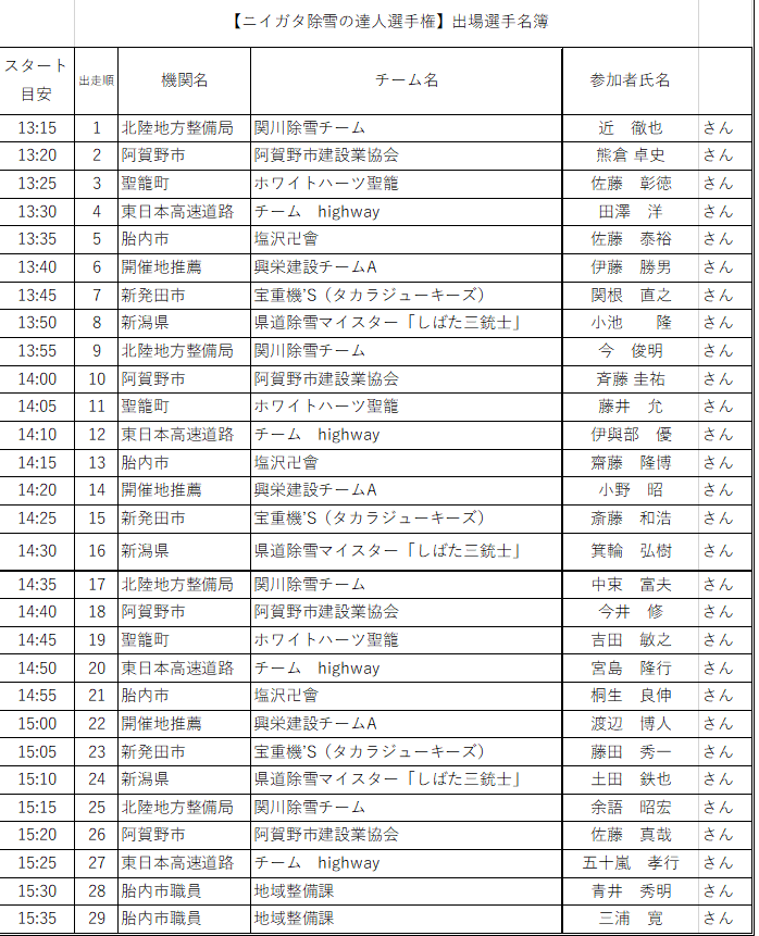 | 主 催 | 第2回ニイガタ除雪の達人選手権実行委員会 |